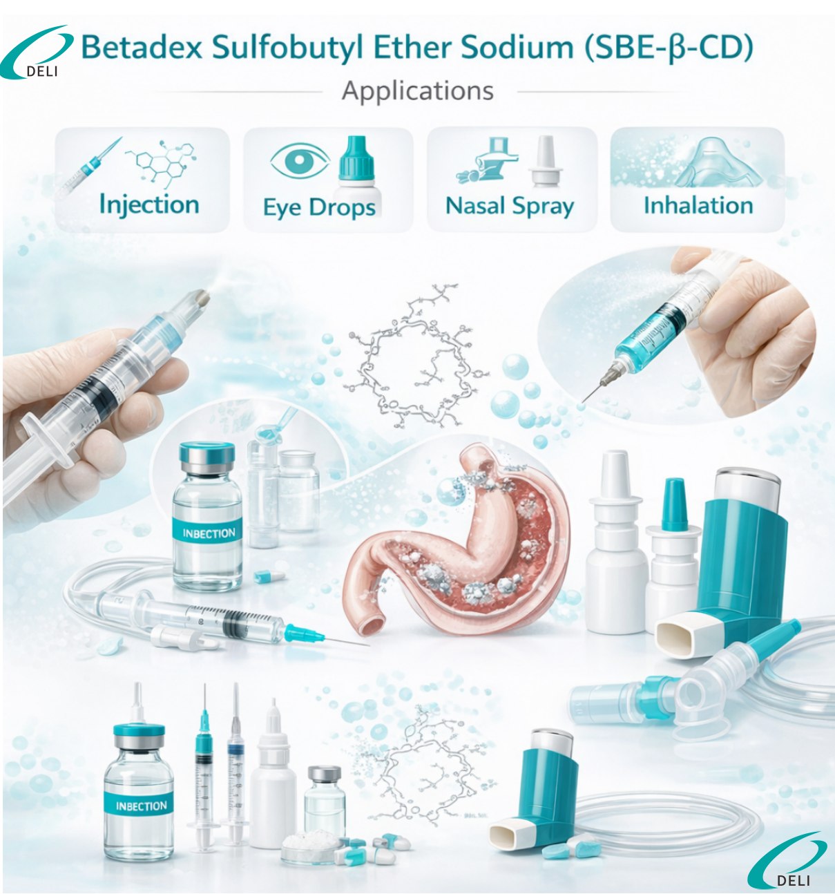 Являясь надежным производителем и поставщиком сульфобутилового эфира бета-циклодекстрина натрия для инъекций, компания Xi'an DELI поддерживает клиентов от ранней разработки рецептуры до коммерческого производства.