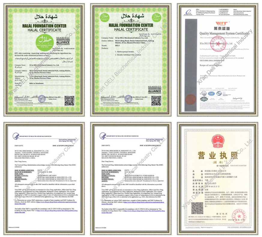Сианьская компания DELI Biochemical Industry Co., Ltd. была основана в 1999 году и специализируется на исследованиях, разработках и производстве циклодекстринов и производных циклодекстрина. Имея более чем двадцатилетний опыт работы в отрасли, компания накопила мощный технический опыт в области фармацевтических вспомогательных веществ.